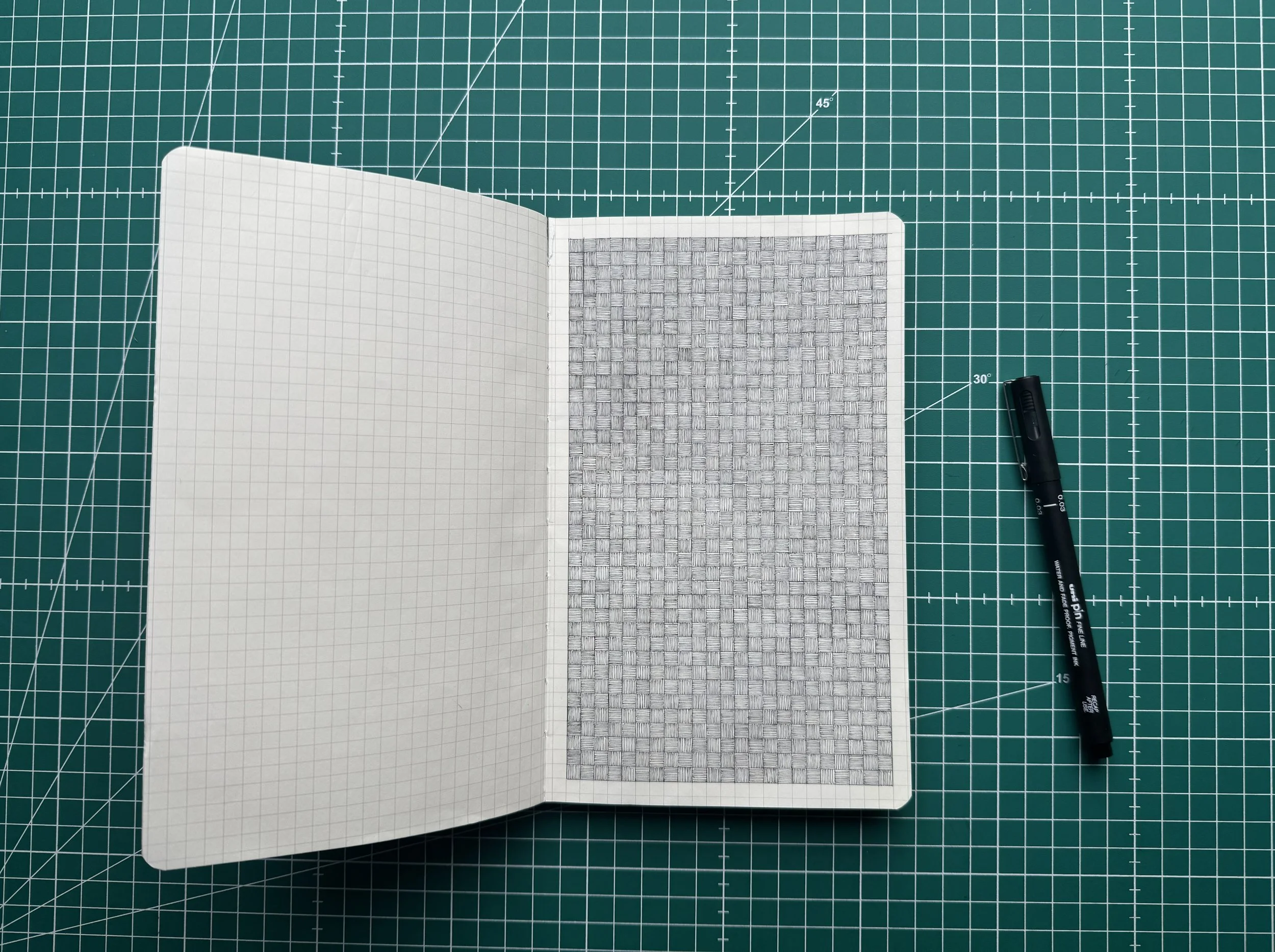 This is an ongoing drawing project made in a Moleskine notebook, one page at a time. Each pattern is built by hand through repetition, pressure, rhythm, and small variations that appear over time. What begins as a simple grid slowly becomes texture, density, and atmosphere. The goal is to fill the entire book, turning the notebook into a record of patience, focus, and accumulation. Each page stands on its own as a drawing, while also belonging to a larger body of work that grows pattern by pattern.